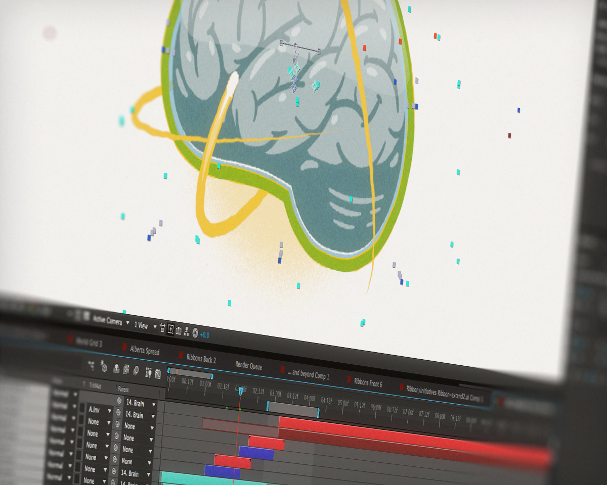Evans Hunt and AFWI tasked me with creating a motion graphic piece which celebrated the brain research AFWI is doing inside and outside Alberta. I developed a simple illustrative style and colour palette based on the Alberta provincial flag and delivered the final animation for the AFWI annual symposium. Thanks to Felix Wong for prioviding the portrait and alberta map segment. Sound by Redemption Audio